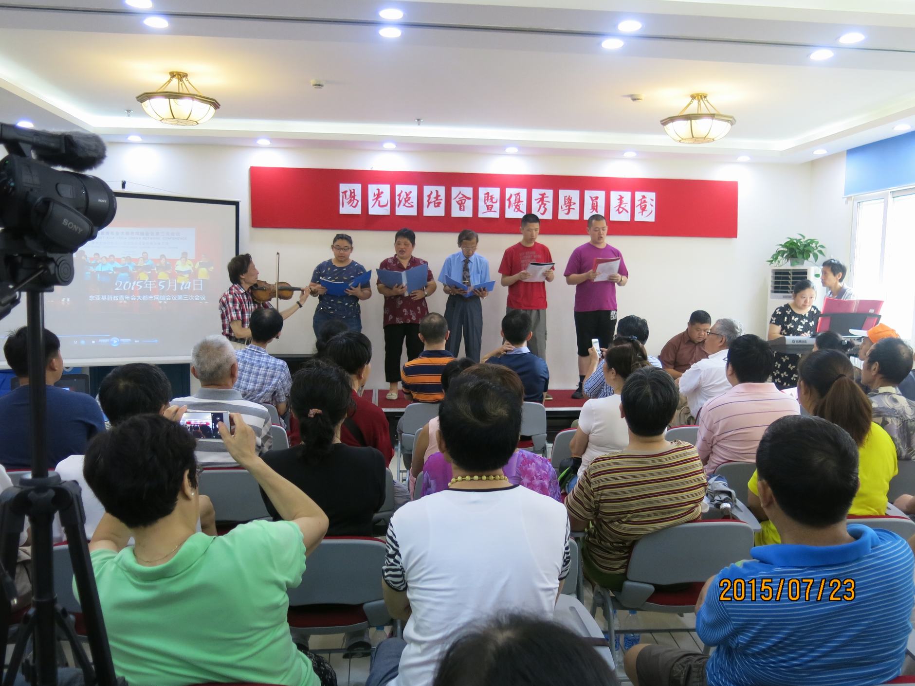 7月23日,由本会华爱公益基金会与受托管理的淮海阳光心园共同举办的阳光总结会暨阳光义诊社区行活动在淮海阳光心园新址、淮海社区生活服务中心举办。上海华爱公益基金会、上海基督教青年会总干事吴建荣、上海市残疾人联合会刘寅先生、淮海中路街道办事处副主任胡啸菟、黄浦区残疾人联合会康复管理科科长杨克斌参加了本次活动。 总结会上,华爱社区服务管理中心就近一年来的淮海阳光心园项目服务进行总结,并由与会领导先后为阳光心园优秀学员、优秀家属以及优秀志愿者颁奖,并对获奖学员以及社区康复者送上寄语,希望学员们在各界人士的关爱下、在阳光心园康复的越来越好。这也是本会围绕“安全社区服务”开展的持续的项目之一。 之后华爱公益基金会还在淮海社区生活服务中心内安排了阳光义诊社区行活动,邀请到多位沪上三甲医院的退休主任医师为社区精神康复者以及社区市民进行心脏老年科,妇科,胃、肠、甲状腺以及颈椎病、椎间盘和骨关节疼痛等老年人常见病的义诊服务,并在二楼特设了由区精神卫生中心的专业医师为社区康复者带来护理宣教、心理咨询、专业指导等咨询服务台,阳光心园学员以及社区康复者的反响非常热烈,一会儿就排起了长龙。 将此次精神类义诊服务台设置在生活中心内,一方面拉近了社区精神康复者与社区市民的距离,另一方面也让阳光心园内康复较好学员以及优秀家属帮助更多社区康复者,这也贴合了华爱公益基金会与淮海阳光心园“爱心传递、传递爱心”的共同理念。 |