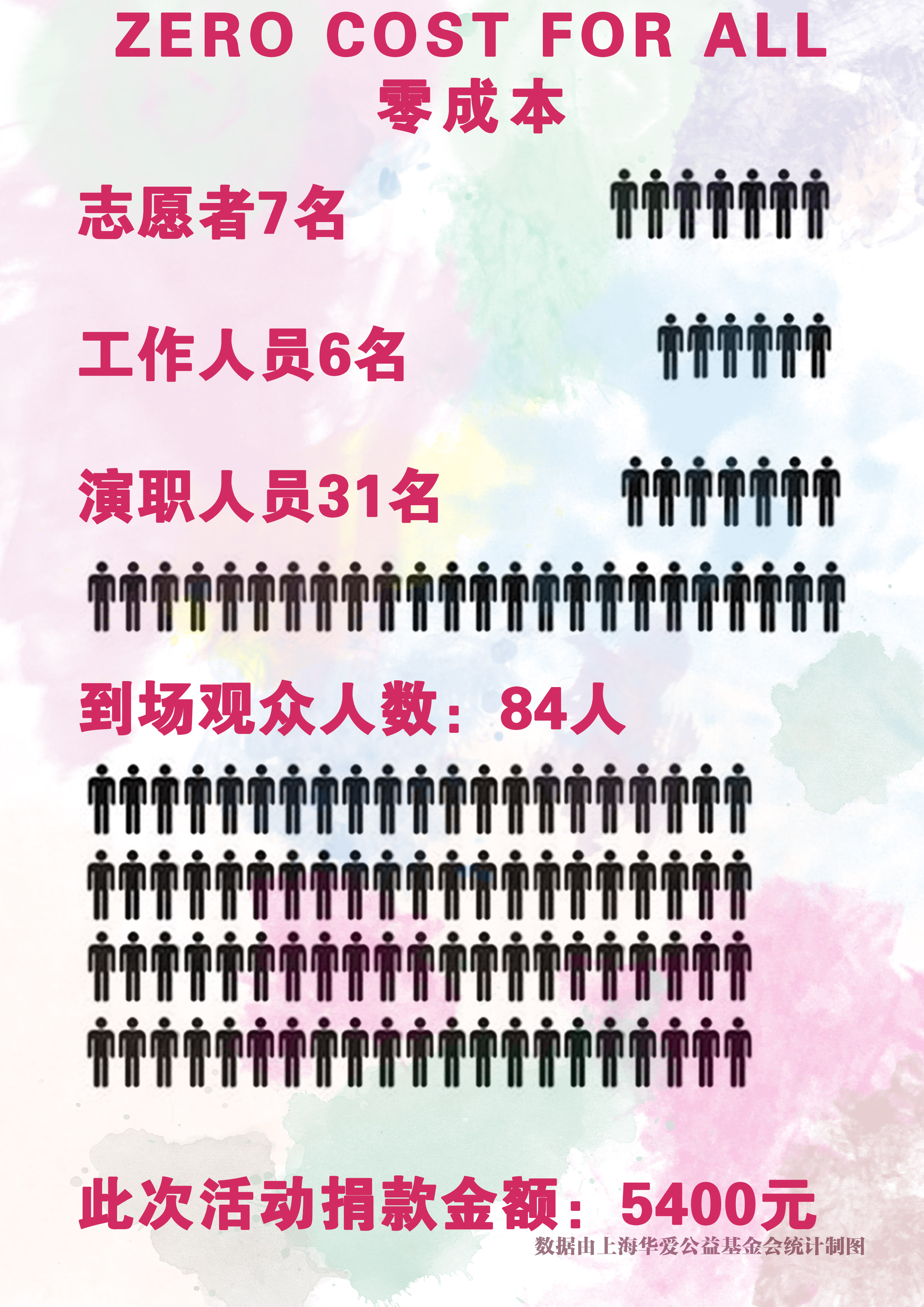 11月1日,本会上海华爱公益基金会举行了一场充满爱心与感动的活动——“白领爱公益,邀您看话剧”。沪上2家知名白领剧社:YMCA•二九剧社和二工大•聚点剧社为充满爱心的观众带来了4部节奏紧凑,演出精彩的话剧,作为爱心回馈。 本会在提倡“爱心传递,传递爱心”的理念的同时,积极为青年群体搭建参与公益事业的舞台,让更多的青年人参与到这一有意义的事工中来,也借此将本会“服务社会,造福人群”的宗旨传递给更多人,让更多需要社会支援的人得到帮助。 此次活动有志愿者7名,演职人员31名,到场观众84名,共计收入捐款(包含门票收入与其他捐款收入)5400元,将全部捐赠于华爱公益基金会,用于特殊人群家庭和自闭症儿童的服务,向他们传递社会各界的爱心与关怀,帮助鼓励特殊群体走出社区,回归社会。