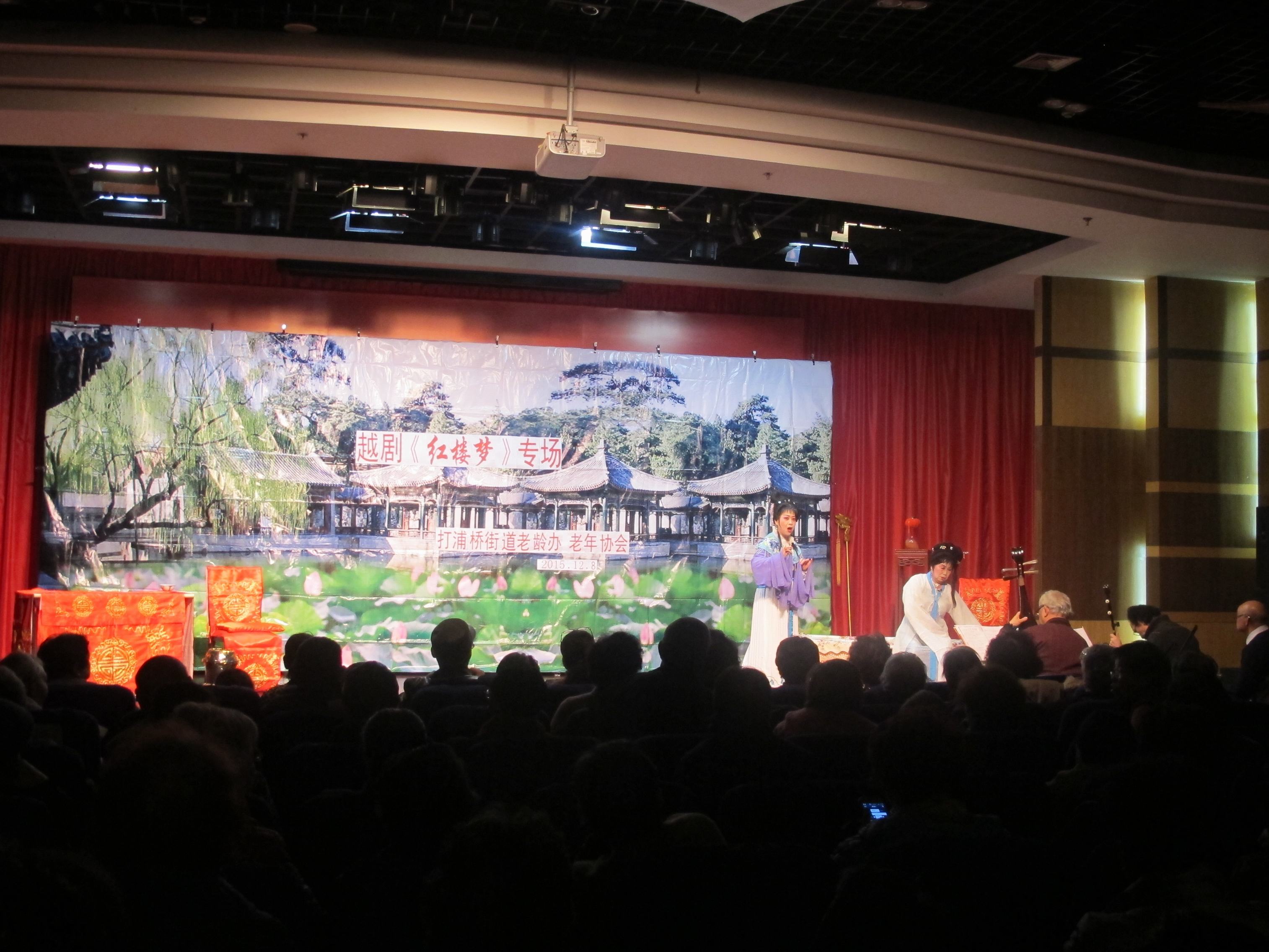 12月8日,本会受托管理的打浦桥社区文化活动中心上演了大型经典越剧《红楼梦》,打浦桥社区老年协会越剧沙龙的成员们为社区越剧戏迷献上了一场高雅的文化大餐,吸引了近200位观众前来观看。经典剧目,婉转唱腔使戏剧文化焕发特有的魅力,越剧沙龙的成员也在此过程中,找到自己兴趣的展示舞台,将文化倡导性与市民参与性相结合,在中心的平台上展示自我,实现自我价值。