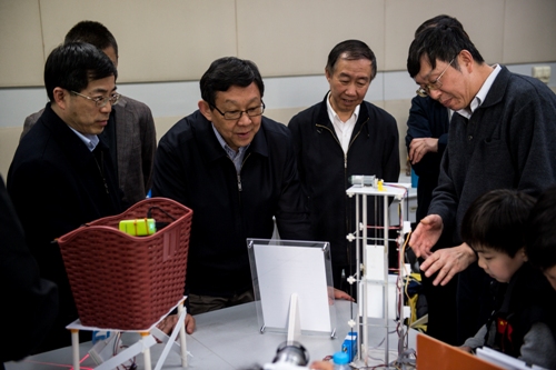 | 4月1日,海峡两岸关系协会会长陈德铭一行来到本会受托管理的青少年科技探索馆,在黄浦区区委副书记张浩亮、黄浦区教育局局长姚晓红、上海市科协副主席王智勇和黄浦区科协主席吴赛阳等区领导的陪同下,从科技教育、创新人才培养等方面实地调研了场馆开展青少年科技创新教育的概况与特色,并听取了场馆的改建规划。对于场馆致力于扎实、有效开展各类科技教育活动,陈德铭会长给予了赞赏,并结合两岸青少年科技教育的发展与交流提出了切实有效的建议。 |