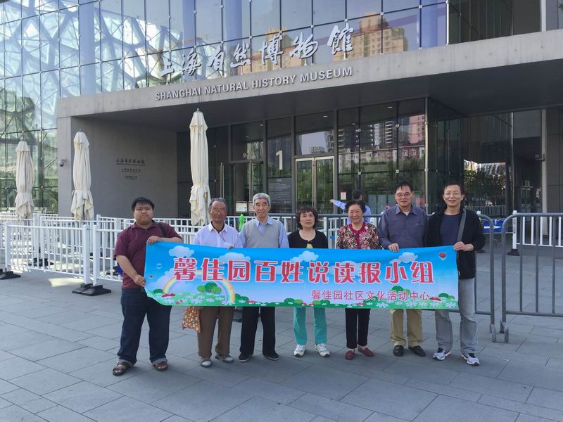 5月12日,本会受托管理的馨佳园社区文化活动中心的“百姓说”读报小组开展了春季外出活动,全体成员参观了上海自然博物馆,领略了大自然发展历史及人类进化历史之美。 “百姓说”读报小组作为顾村镇现行唯一此类小组,一直得到区镇各级的关心和关注,小组也稳步发展,不断有新组员加入,中心将继续支持并推动读报小组发展,在小组成员之间和小组成员与社区市民之间形成传播正能量的循环结构,更好地促进社区和谐发展。