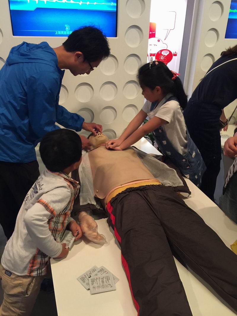 5月14日,本会受托管理的上海青少年科技探索馆联合上海市民防教育培训中心开展了“自救互救技能亲子培训课程活动”,19组参加活动的家庭在讲解员的指导下,以电子假人为对象,通过动手实践练习,逐步了解徒手心肺复苏术的相关知识以及如何为受伤人员进行包扎的方法。“数码贴图”课程中,在数码专家顾老师的指导下,小朋友在老师的指导下,学习使用FLASH、NEOPLAY等软件,分别完成动画背景设计、动画人物上色、人物动作编辑、合成成片等步骤,最终完成一部简单有趣的动画成片。此类动手活动比单一的课本教学更有意义,不仅让小朋友们感受到科技改变生活的力量,也鼓励他们为了让生活更加科技化进行更多地科技探索。 |