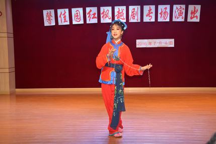 7月4日,本会受托管理的馨佳园社区文化活动中心举办了“小小俏江南”少儿越剧专场演出,共吸引150名市民前来现场观看。本场演出由11岁的丁麟懿小朋友独挑大梁,在指导老师和中心红枫越剧队成员的配合下,为社区市民献演了折子戏《血手印》、《情探》、《花园会》、《玉堂春》、《合体》、《送信》等,压轴好戏《送凤冠》更赢得台下居民阵阵喝彩,很多从市区前来给丁麟懿小朋友捧场的票友也都上台表演,给她加油助威。