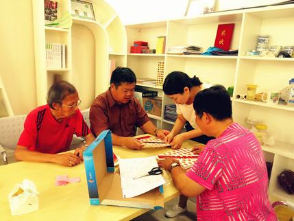 7月29日,本会受托管理的淮海阳光心园开展了缅怀革命先烈主题活动,在建军节即将到来之际,通过解放军纪录片观看、军舰拼图等活动,让学员感受解放军战士不顾安危、不怕牺牲、义无反顾的伟大精神。在活动中,志愿者与学员搭档,携手共同制作军舰,并鼓励学员自由发挥。此类活动既向社区普及了爱国爱军的思想,也为阳光心园的学员提供了接触社区的平台,借助志愿者这一角色,向更多的人传递理解包容精神病康复者的理念。