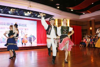 9月11日,上海旅游节开幕活动“精彩旅游•欢乐社区”在本会受托管理的打浦桥社区文化活动中心,以“中外文化大视角”展演的形式举办。演出盛邀了来自美国德克萨斯州理工大学的表演团队来中心交流。作为一支在中美旅游年参加上海旅游节的美国表演团,他们擅长爵士、嘻哈、现代等多种风格的舞蹈表演,以绚丽的舞姿向广大观众展示了美国大学生舞蹈团的高超技艺。中心的文艺团队也给外国友人准备了丰富多彩的表演节目,社区舞蹈队的民族舞《夜来香》、《张灯结彩》,让外国观众一览中国的传统艺术文化。中心通过有效的资源整合,不断邀请来自各国的民间艺术团队走进中心,增进交流,互通友谊。在拓展市民国际艺术视野的同时,更为社区市民的精神文化生活送上一道道充满各国风情的文化大餐,营造艺术文化的社区氛围。