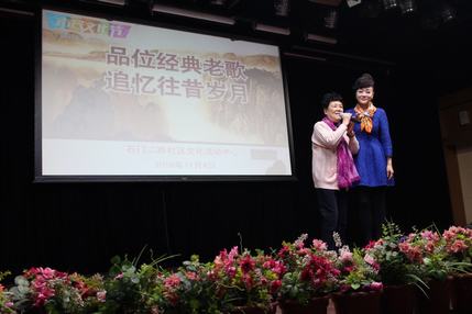 11月4日,来自上海轻音乐团的年轻歌唱演员们在本会受托管理的石门二路社区文化活动中心,为社区市民带来了一场精彩的“品味经典老歌,追忆往昔岁月”老歌演唱会,吸引了众多社区音乐爱好者前来倾听。优美的旋律让现场观众也跟着一起哼唱,场内气氛一度高涨。形式多样的文艺演出活动,极大地丰富了社区市民的娱乐生活。