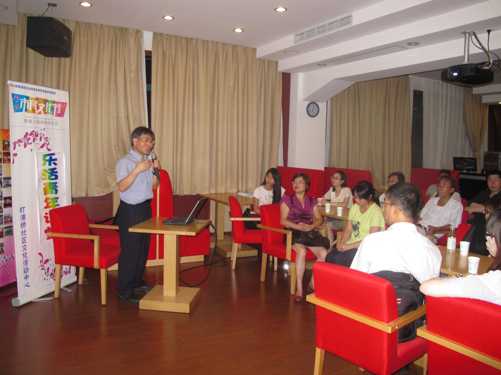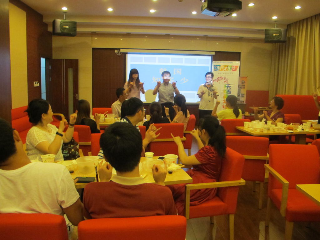 8月6日,本会打浦桥社区文化活动中心举办了“韩国文化青年课堂”。近三十位白领青年齐聚一堂,和来自韩国春川的申先生一起畅谈韩国民俗风情,体验韩国综艺游戏、品尝韩国经典美食等。此次课堂将韩国传统的文化寓教于乐,使中国青年们近距离地了解欣赏韩国传统文化,同时也加深了两国民间的文化交流。