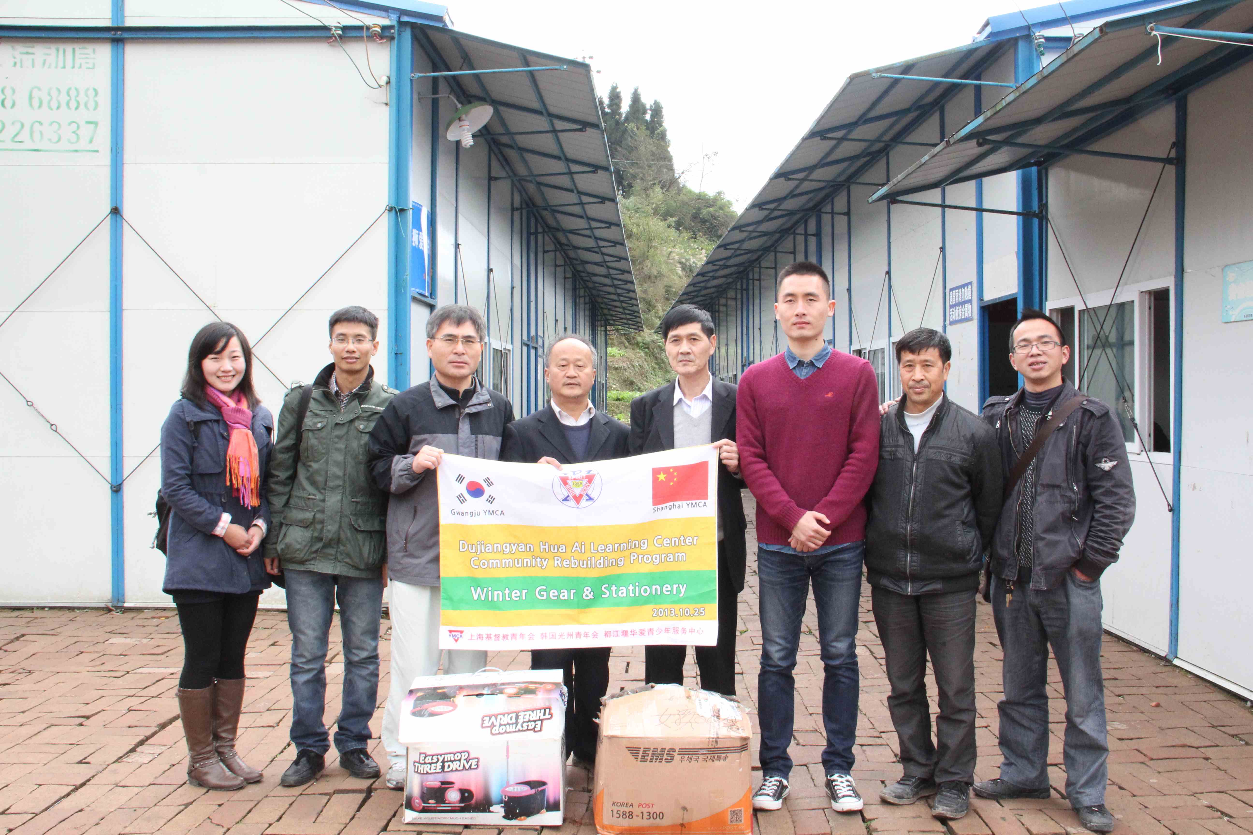 11月12日,“送温暖,献爱心”慰问活动在本会服务的都江堰地区进行之后,在雅安上里镇两所受灾小学继续开展爱暖心活动。都江堰华爱青少年服务中心沈建鑫同工带领韩国春川YMCA的申德辰先生,给孩子们送去了御寒保暖用具与学习用品。为这些就学环境艰苦的孩子送上我们的关怀慰问,也倡导了爱心传递的理念。