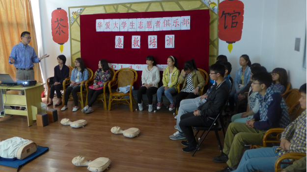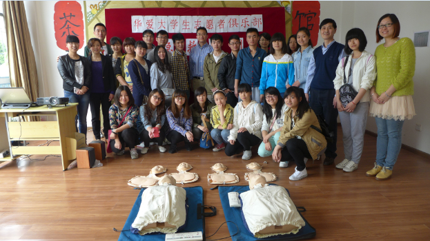 4月27日,本会都江堰华爱大学生志愿者俱乐部邀请了四川大学华西医院麻醉科主治医生李崎博士为俱乐部成员开展了“心肺脑复苏术”(以下简称CPR)急救培训,让志愿者们掌握了CPR的基础操作,使中心今后能为社区市民提供更好的急救服务。李博士作为志愿者为中心的志愿者俱乐部培训急救知识,既是本会坚持的走专业化发展道路,也是本会志愿运动获得社会力量支持与扩大影响的良好体现。