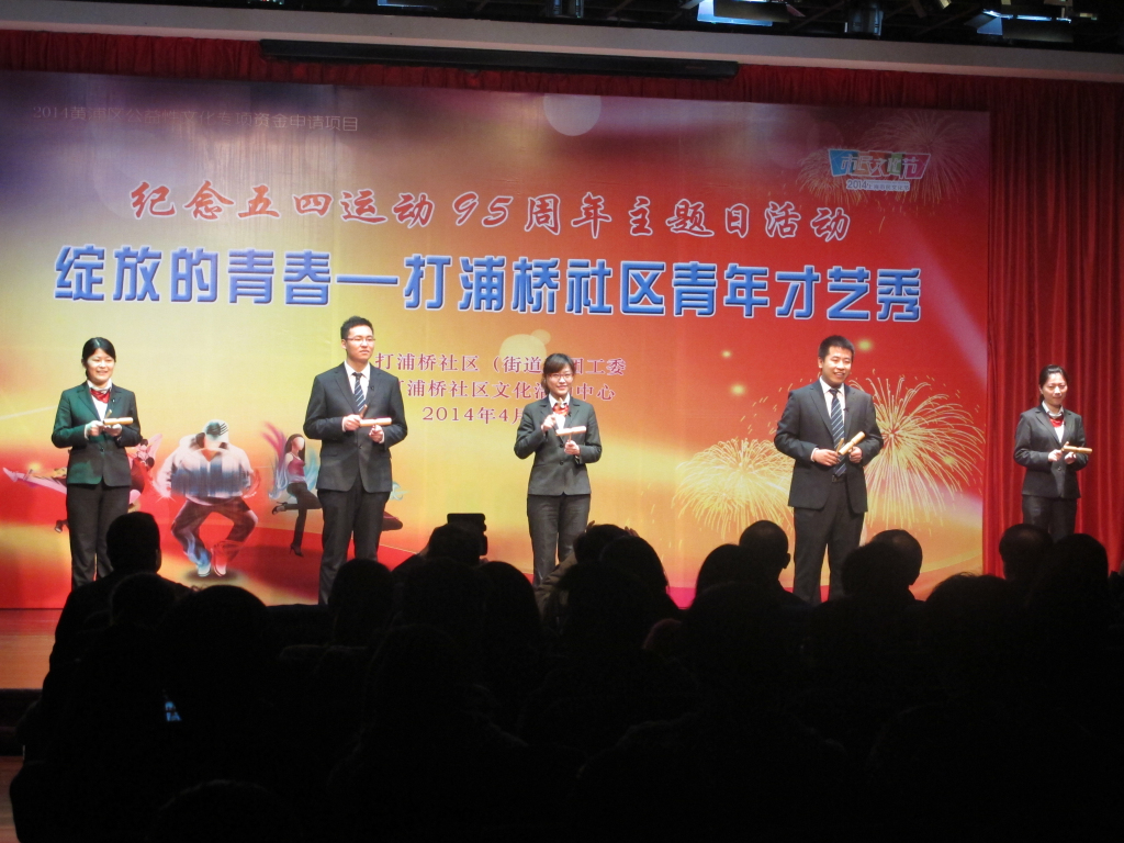 | 4月28日,本会打浦桥社区文化活动中心举办了“绽放的青春——打浦桥青年才艺秀” 暨“五四”运动95周年团日活动。用别具一格的精彩表演表达了青年对“五四”精神的热爱。演出后,中心还特意开展了青年志愿者服务摊位体验,在本会举办的“星空下的微笑”关爱自闭症义卖环节中,共收到义卖善款3562元。义卖活动用独具人文关怀的视角积极传递正能量,丰富了五四青年节的内涵,使社会责任的培养融入在活动中。本会与青年志愿者和广大社区青年以奉献爱心这一特殊而有意义的形式迎接“五四”青年节的到来。 |