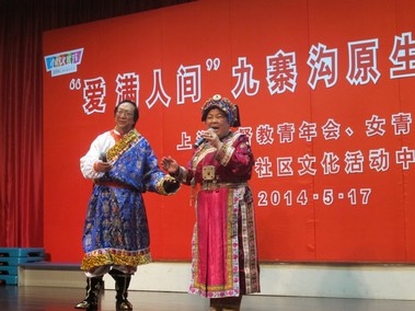 在汶川灾后重建六周年之际,本会为推动增进上海、四川人民之间的了解,让更多的上海人民感受不屈不饶的灾后四川市民的精神,特邀请了四川都江堰社区市民以合唱的形式组团于5月15日至18日到上海社区进行交流。来自四川都江堰市九寨沟县退休文艺骨干组成的“九都晚晴演唱队”共有25位各民族成员组成,其中羌族1名,藏族3名,回族6名,汉族15名,平均年龄 68.9岁。 在参观上海的几大地标建筑之后,合唱团一行前往了本会受托管理的打浦桥社区文化活动中心、新桥镇社区文化活动中心、罗山市民会馆,与文化中心当地的团队一起进行交流演出。在表演中“九都晚晴演唱队”与上海青年会合唱团、华爱合唱团等团队都把自己最好的节目呈现给社区市民观众,华爱合唱团表演的是标准的美声合唱,而“九都晚晴”则是原生态的演唱,是2008年被列为国家级非物质文化遗产名录的南坪曲子。两种演唱方式虽然表演形式、方式不同,但在这场演出中却完美的融合在了一起,让场下欣赏的观众也得到了视听盛宴的享受。这场“爱满人间”——九寨沟原生态民歌音乐会,不止是让观众耳目一新的极具民族特色的现场音乐会,更是这些高龄的合唱团成员在向我们传达他们的心声:都江堰人民已经从灾难中站起来了!美妙的歌声传递了灾后四川市民的坚韧精神,以及对于上海人民在灾后给予援助的感激之情,而这正是见证了城市之间互帮互助的正能量传递。 “九都晚晴演唱队”入住的汉庭酒店四川中路店在得知演唱队一行的背后意义之后,为我们提供了社会公益资源,资助了演唱队在沪期间的住宿费用。我们看到了“可爱的上海人”,以及作为一个大都市所拥有的宽广和博爱的心胸。