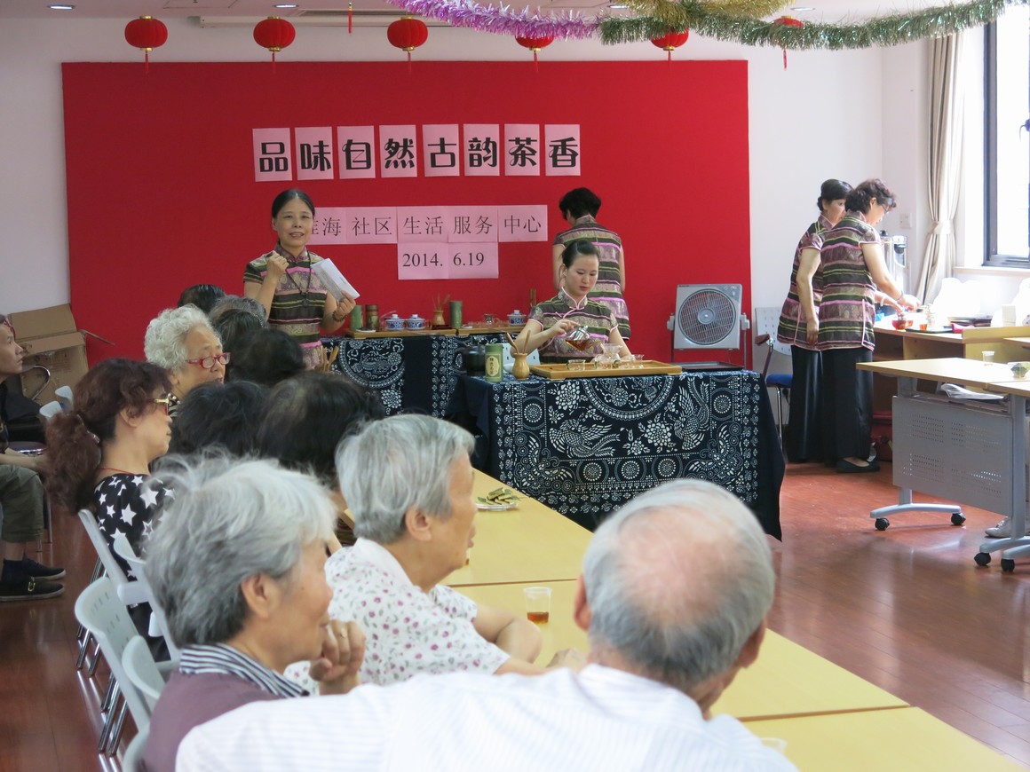 6月19日,本会淮海社区生活服务中心邀请了韩欣茶艺工作室的专业茶艺师们给社区老人上了一堂生动有趣,适合老年人的茶道文化课。专业的茶艺道具、现场泡制的黑茶和青茶、喝茶的正确养生方法让社区市民们领略到了中国茶道文化的博大精深,茶艺文化进社区也是本会中心尝试的一个新的探索。
