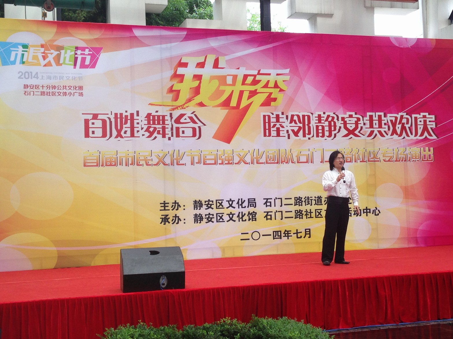 7月18日,首届上海市民文化节的近十支百强文化团队,齐聚石门二路社区,为社区居民带来一场“百姓舞台我来秀,睦邻静安共欢庆”——文体小广场专场演出,在炎炎夏日中为老百姓带来一丝清凉。本会通过此类形式,提升社区整体的文化欣赏素养,也为多才多艺的市民提供专业的展示舞台,成长自我,成就社会。