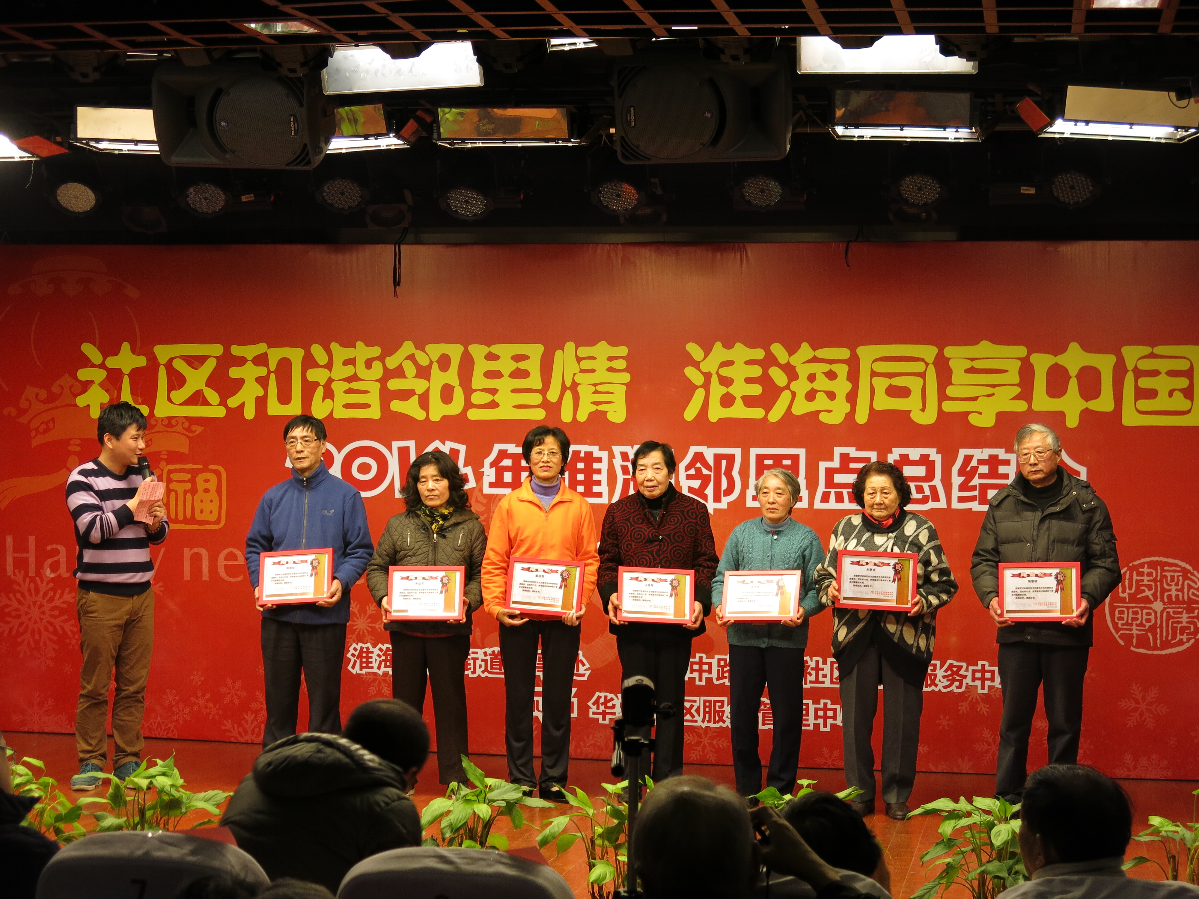 | 12月25日,本会淮海社区生活服务中心举办了“社区和谐邻里情,淮海同享中国梦”的邻里点总结会。会上回顾了过去一年时间里邻里点的活动情况及邻里点老年朋友的参与情况,华爱社区服务管理中心马兆珍主任、街道民政科程志军副科长及邻里点促进会会长张力生老先生出席并发言,对邻里点的工作给予了充分的肯定并给出了新的一年的期望和发展要求。会上还为8位优秀志愿者授予证书,感谢他们在过去一年中为生活服务中心提供的志愿服务。此次总结会不仅体现了邻里点服务的多姿多彩,同时也反映了淮海社区老年朋友的活力四射,在创造一个中国梦的大环境下,邻里点项目将持续着力营造和谐社区魅力生活,为老年朋友提升生活质量和幸福指数。 |