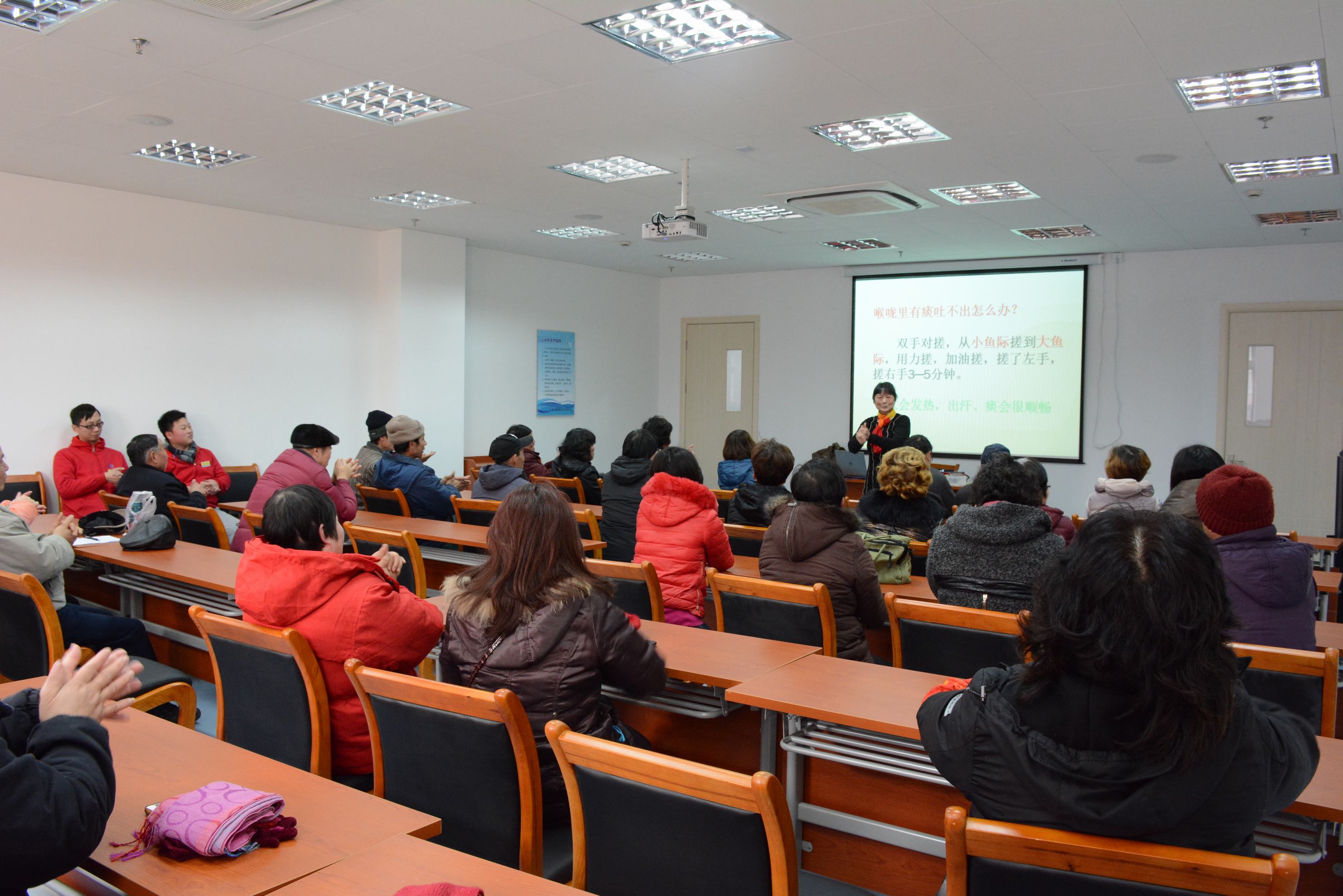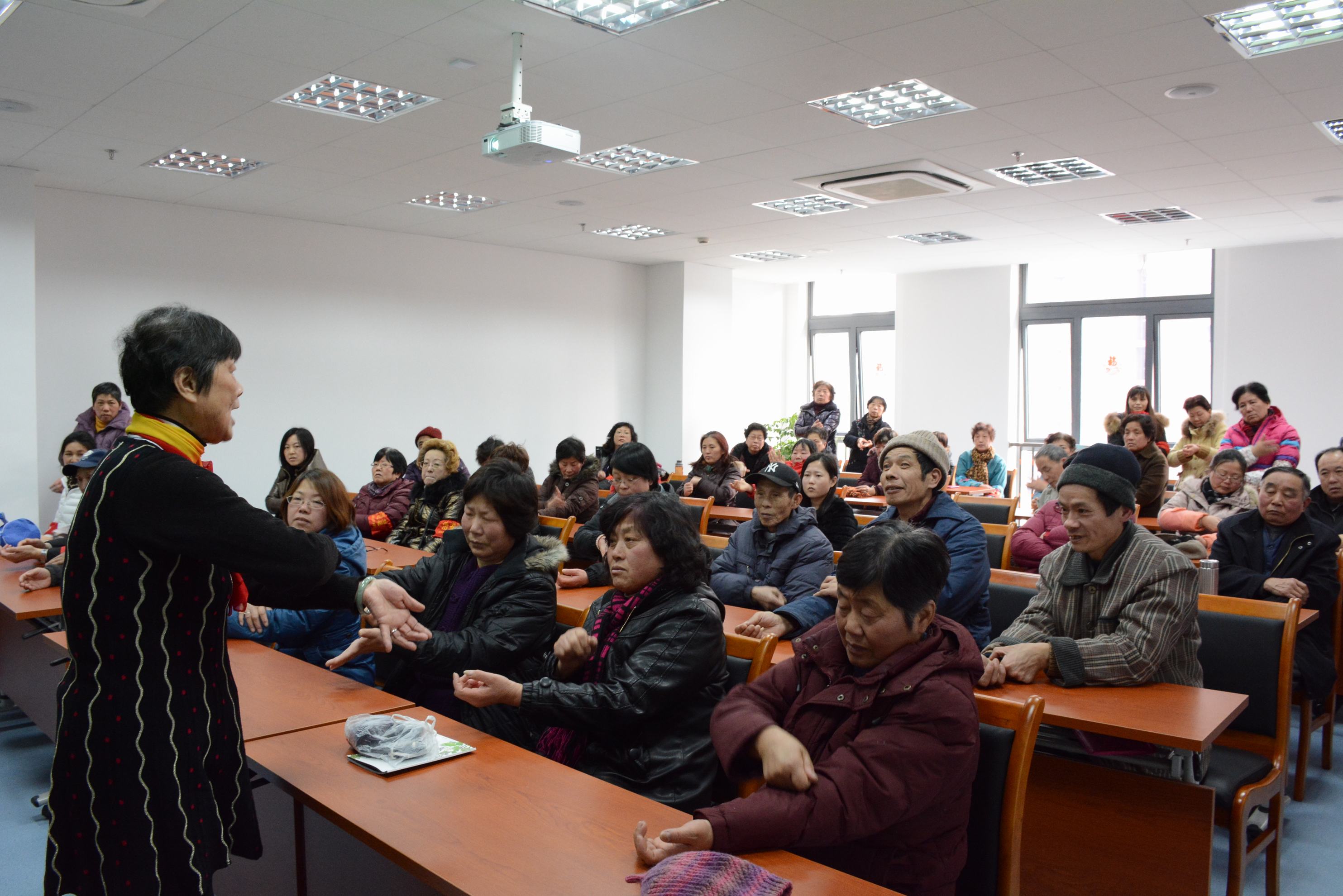 | 2月5日,本会受托管理的馨佳园社区文化活动中心开展了“老年人如何应对PM2.5”的健康知识讲座,共吸引60余名社区市民参加,居民热情高涨,互动不断,在快乐氛围中学习实用的健康技能。此次来自市科协讲师团王文老师,用图文并茂、生动活泼的方式,结合大量实事案例与实践经验,为居民分享了PM2.5的危害及应对措施,并且结合自己多年的中医研究,手把手教居民疏通经络,带领居民认识自己,学习经络养生。讲座受到了居民的热烈欢迎,中心此后将开展一系列针对居民需求、贴近生活的健康类讲座,为社区市民搭建自我提升的讲坛。 |