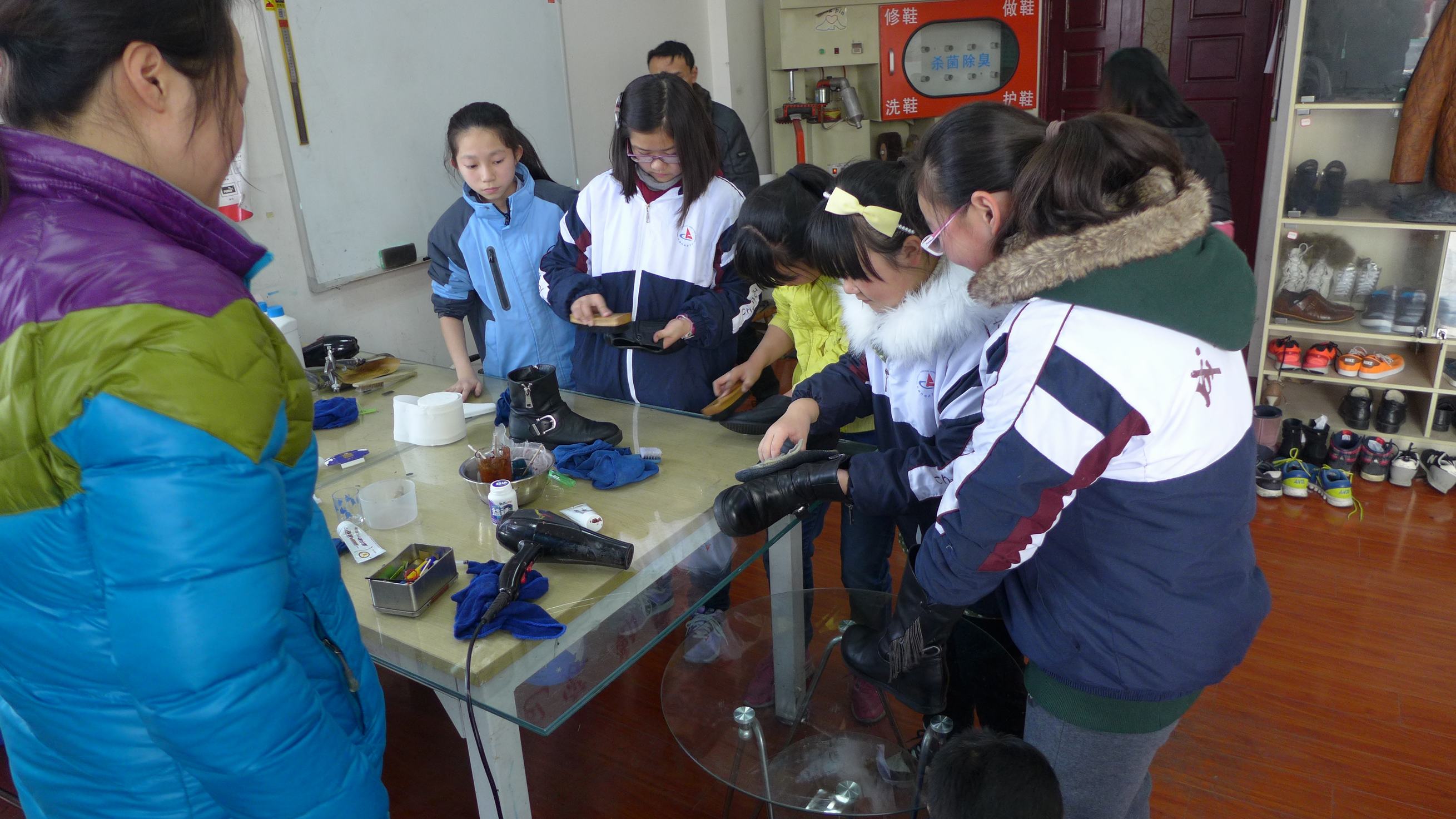 | 2月8日,本会都江堰华爱青少年服务中心开展了“伤健共融之小小擦鞋匠”活动,组织四所中小学的志愿者前往心启程残疾人爱心皮具护理店体验擦鞋的爱心志愿服务。在本会同工的帮助下,小志愿者们用手语和店里的残障工作人员交流,并学习如何使用皮具工具和器械来为自己的父母做基础的皮鞋清洗和保养。此次活动通过“伤健共融”和青少年服务有机结合的形式,丰富了都江堰当地志愿者的年龄层次,在倡导关爱弱势群体的同时,也向青少年传递了感恩父母的思想,加强了当地的家庭建设。 |